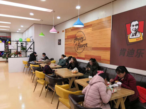 可见的是,KFA肯迪乐炸鸡汉堡店采用了以鲜艳红为主色调的温馨装潢风格,伴随着美食带来的享受,给人一种休闲和谐美。
